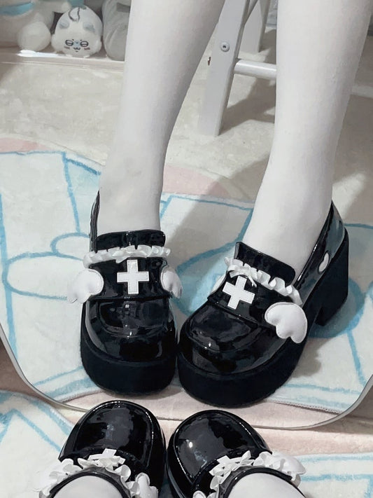 Jirai Kei Black Lolita Star Wing Mary Jane Shoes