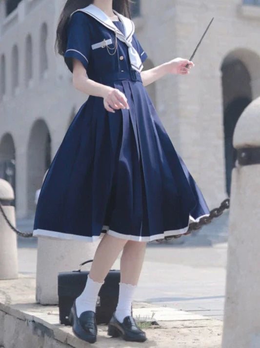 Color Sailor + Chamomile Ribbon Dress Elegant Blue Route Tie Gray