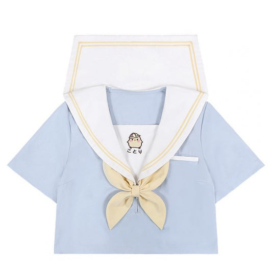 Little Seal Light Blue Sailor Collar JK Uniform Top with Free Bow Tie