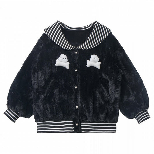 Black Striped Sailor Collar Plush Coat