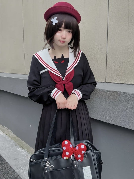 Black Little Devil Sailor Collar Pleated Skirt JK Uniform Dress