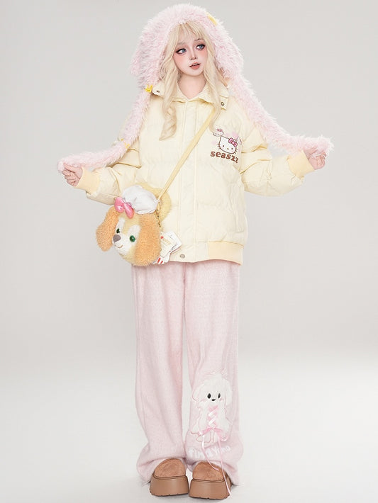 Light Yellow Kitty Print Detachable Sailor Collar Thick Jacket