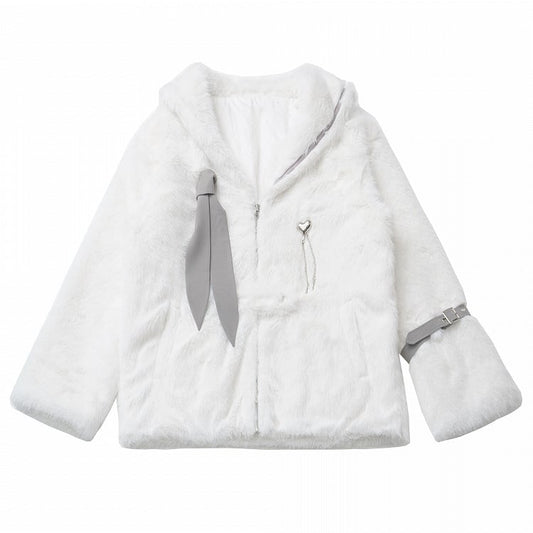 White Sailor Collar Buckle Strap Plush Coat