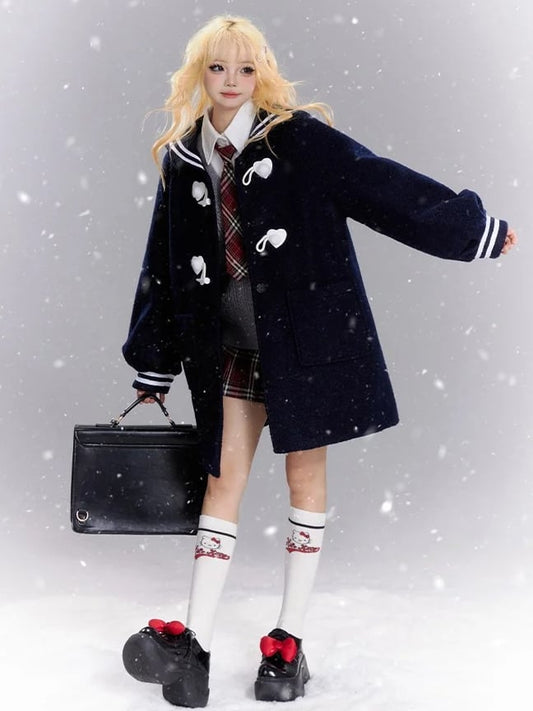 Navy Blue Sailor Collar Preppy Style Coat