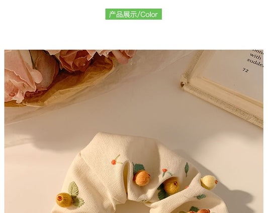Print Applique Floral Square Cherry Scrunchie