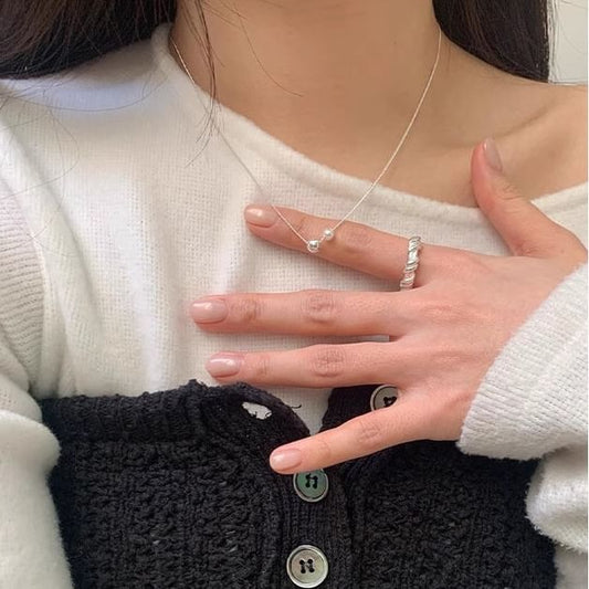 Faux 925 Sterling Necklace Silver Ball Pearl