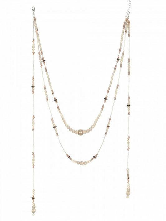 Necklace White Beaded Layered