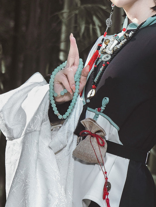 Beaded Black Necklace Pendant Tassel