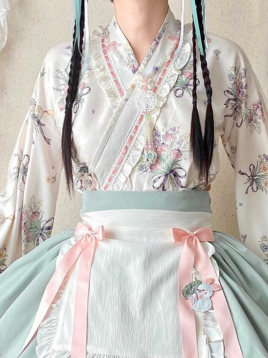 BlueWhite Clips Trim Lolita Decorated Details Sweet Lace Beaded Mini With Hat Bowknot