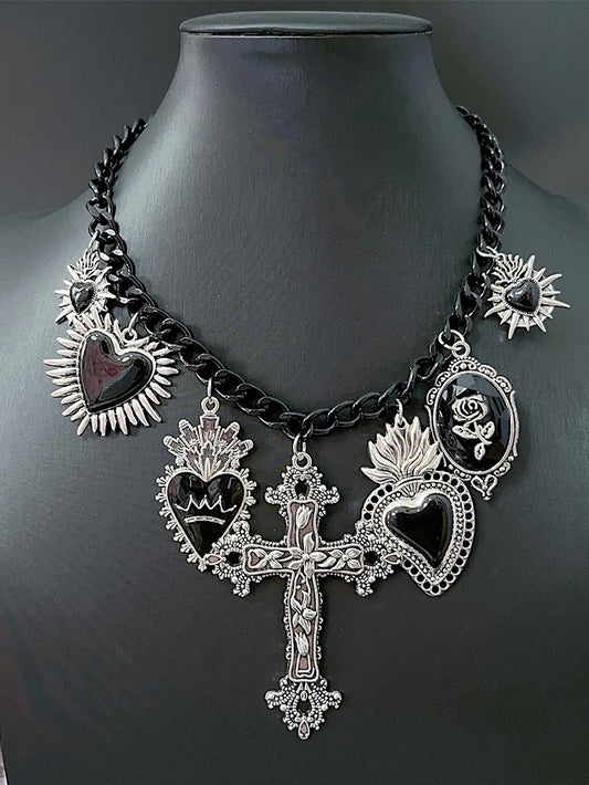 Heart Necklace Red/Black Y2K Cross Pendant Floral And
