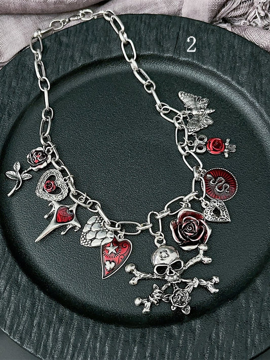 Options Floral And 3 Skeleton Y2K Necklace Heart Pendant