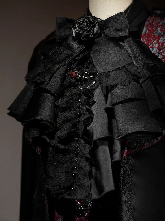 Red/White Gothic Lolita Necklace with Cross Pendent