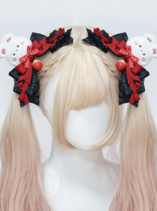 Red&White Sweet Lolita Strawberry Bunny Ears Mini Hat