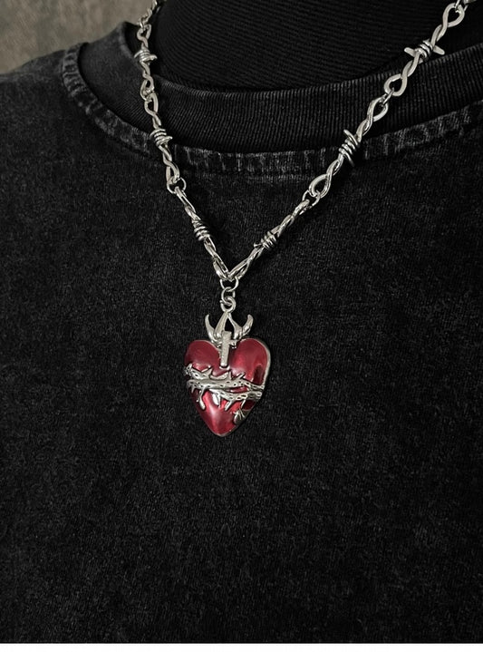 Gothic Red Thorn Heart-shaped Pendant Necklace
