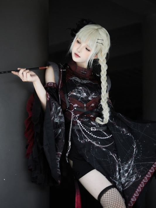 T-shirt Wasteland Butterfly Drawstrings Gray Punk Print with