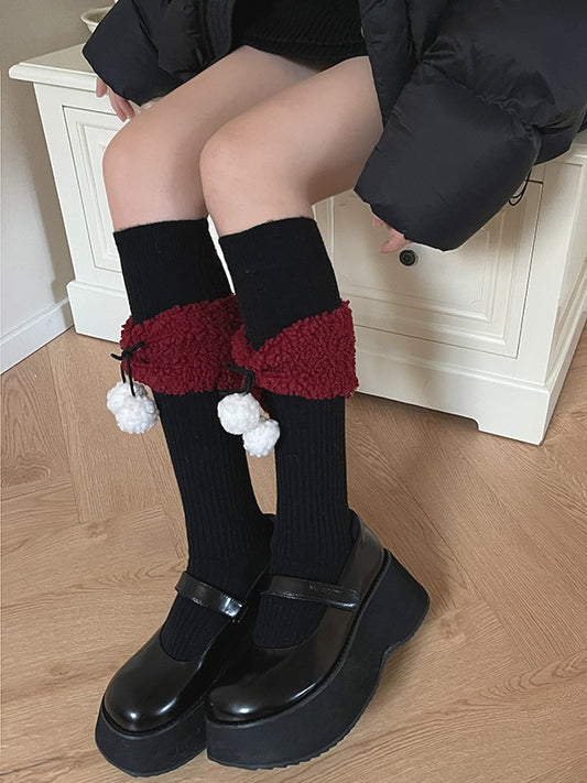 Lolita Fleece Cuff Knitted Socks With Pompons
