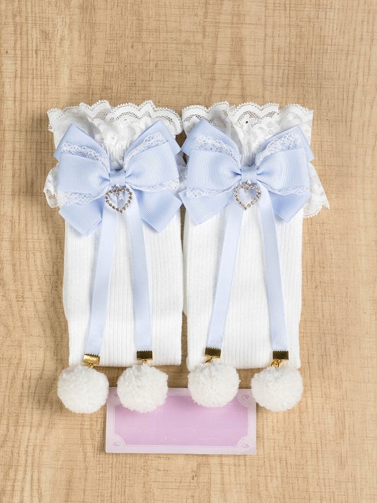 Jirai Kei Pompom Details Lace Cuffs Bowknots Underknee Stockings