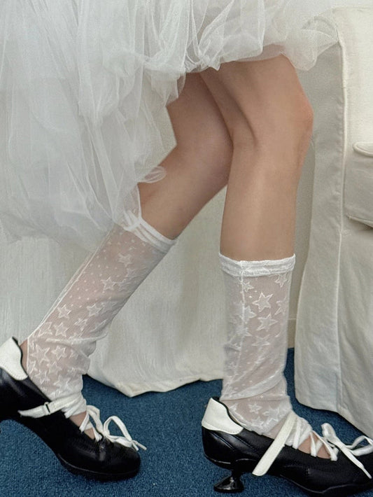 Socks (Delicate Semi-sheer Footless Star-Pattern Edgy Calf Style)