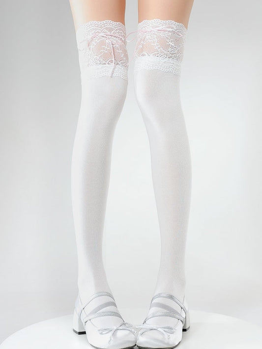 42CM with Bow Lolita Decoration White/Brown/Apricot Stockings Lace-Trimmed