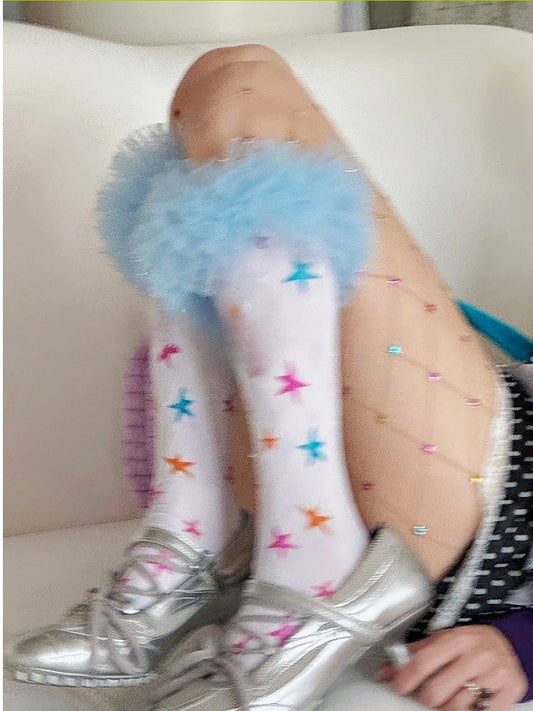 Stockings Star-Print (Y2K Ruffle Colorful Tulle Sweet Style)