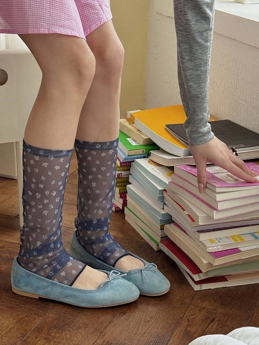 Style) Calf Sweet (Delicate Floral Semi-sheer Socks Footless