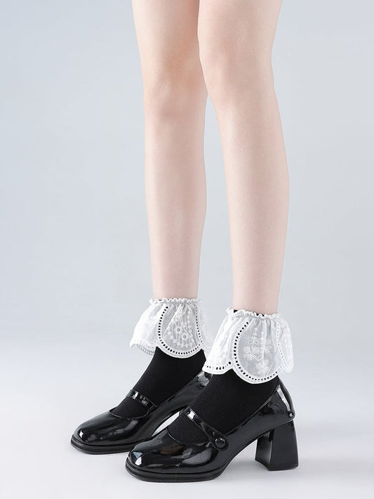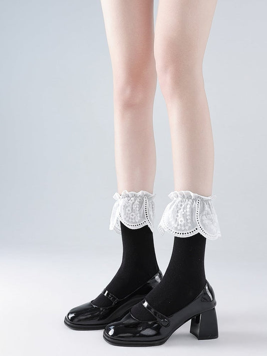 White/Black Lolita Ruffles Cutout Socks Lace Mid-Calf
