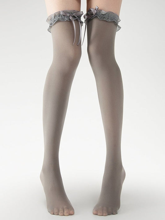 Knee Trim Stockings Black/Gray/White Slimming Over Lace