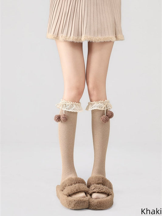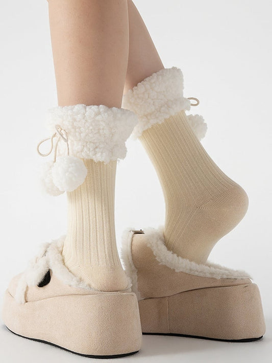 Colors Pom-Pom Decoration Fleece Socks Cotton 7 Trim with