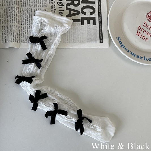 Black/White Cuff Bow Socks Lace Three-layered