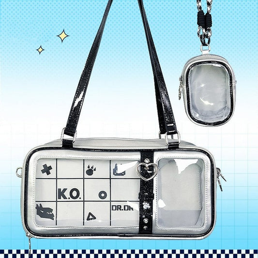 with Ita Checkerboard Luminous PU Heart Accents Buckle Silver Bag Pattern