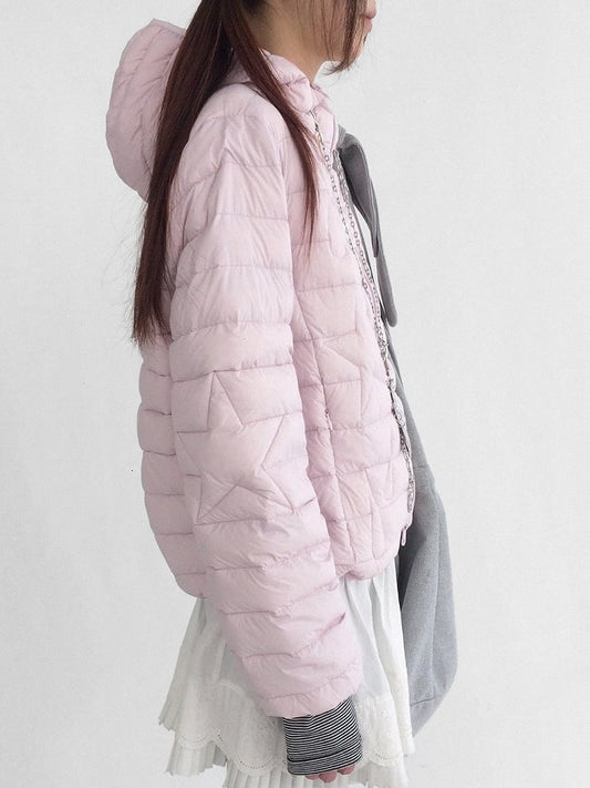 with Star Pink Hoodie Kawaii Front in Daily Pattern Closure Zipper Teardrop Jacket