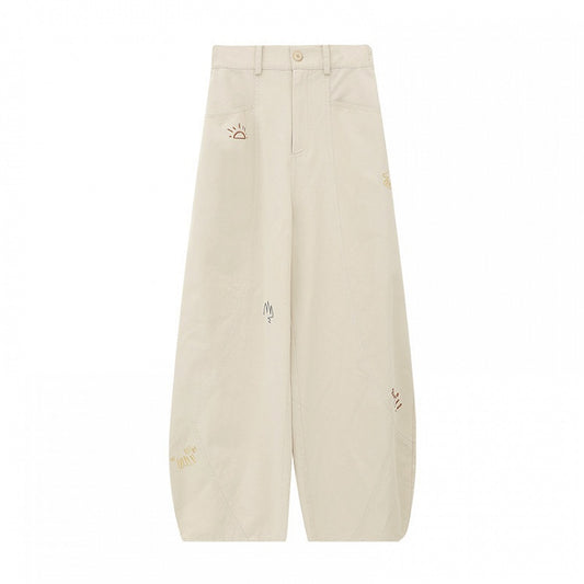 Wide-leg Beige for Pants Cute Autumn Winter Cut - Vintage Embroidery