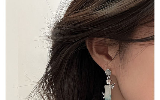 Bamboo Eye Alloy Faux Cat Earring Dangle Stone