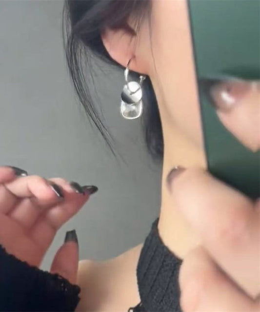 Simple Silk Stainless Earrings Crystal Steel Disk Drop