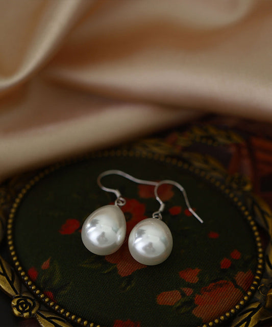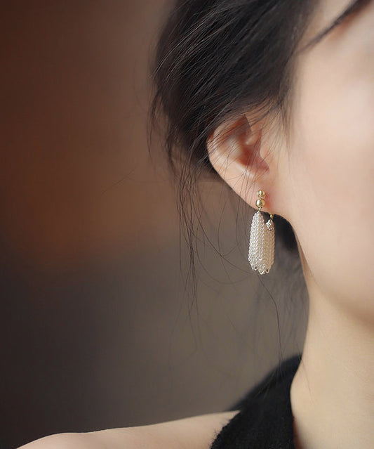 Sterling Earrings Silk Simple Pearl Silver Drop
