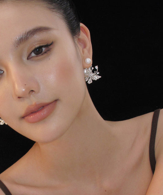 Stud White Sterling Unique Pearl Silver Butterfly Earrings