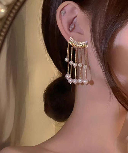 Vogue Earrings Copper Alloy Gold Drop Tassel Zircon Pearl