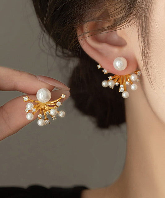 Copper Stud Earrings Gold Overgild Fireworks Classy Zircon Pearl