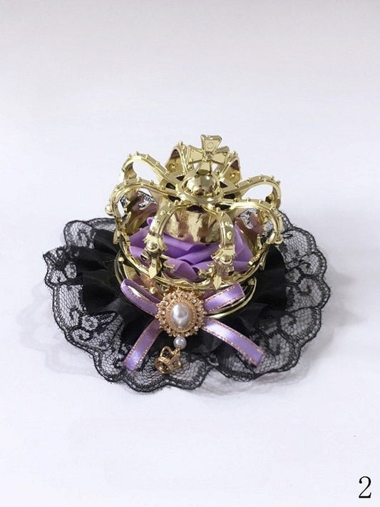 – 5 Crown Options Hairclip Accents Lolita and Black with Based Lace Bow Bead