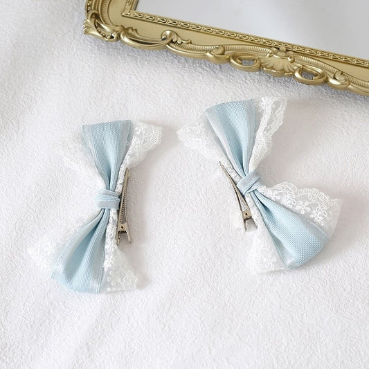 Lolita Cute And Lace Pair Of Bowknot Light Blue Hairclips A White