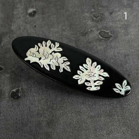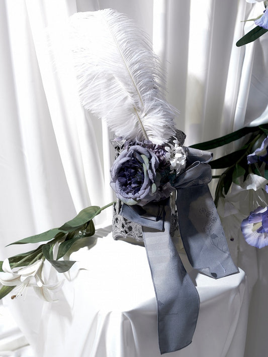Accent Flower Lolita Hairclip Black/Gray/Brown and Bow Feather with