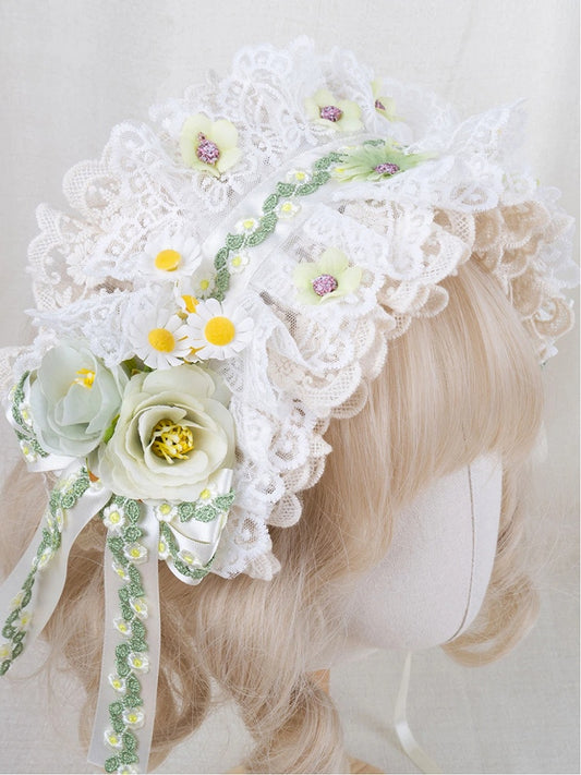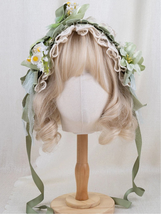 Lolita Butterfly Hairband Green White Daisy Decorated and