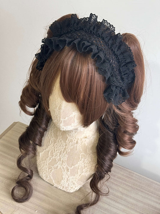 Ruffled Hairband (White/Black) Lace Sweet
