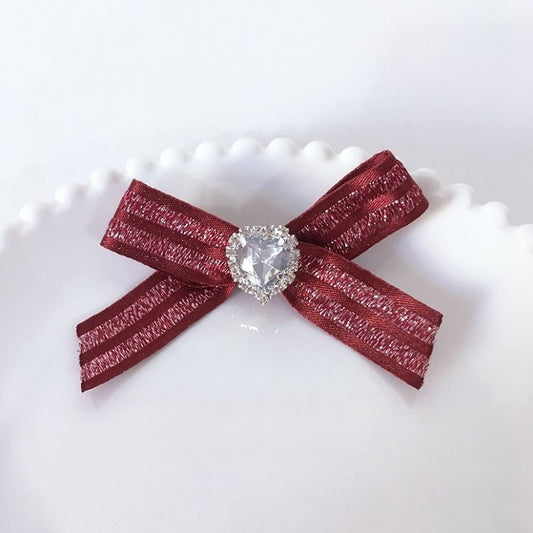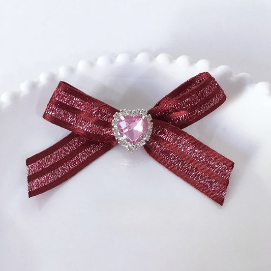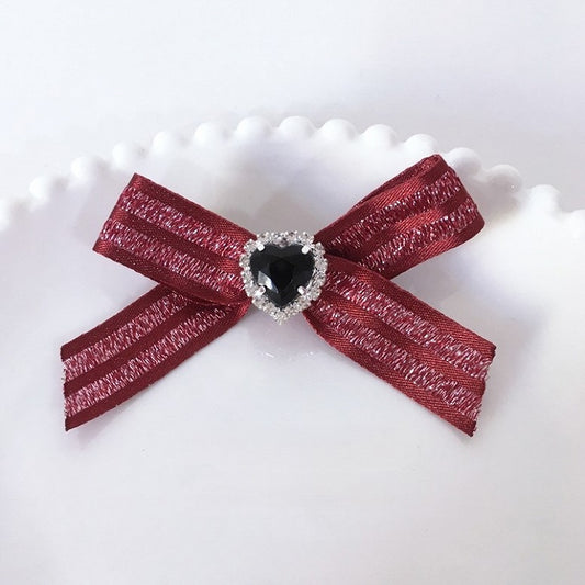 with 5 Rhinestone Bow Colors Black Hairclip Heart Ribbon