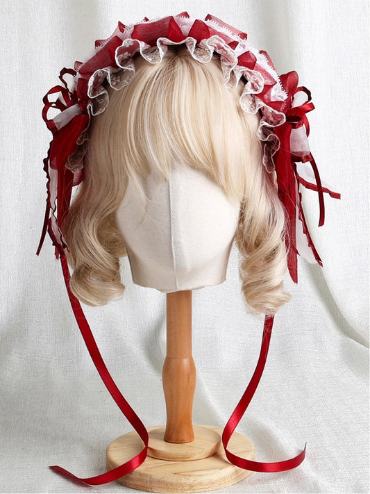 Hairband Ruffled Bow Red Sweet Lace