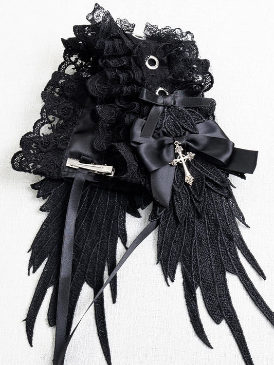Hairband Wing Lace Cross Details Black/White decorated Studs Bow with
