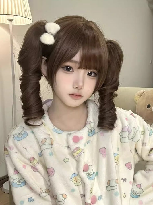 Claw Short Full Caramel Ponytail Wig 35CM Bangs Roman Double with Curly Clips