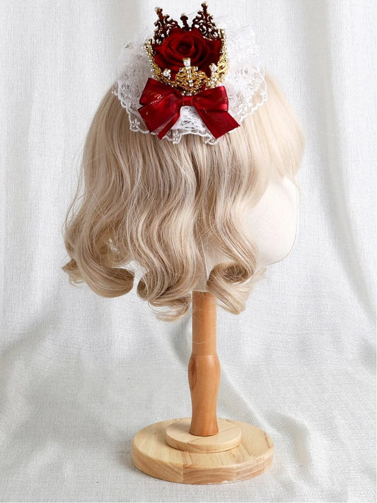 Gold Rose Lace Hairclip Red Crown