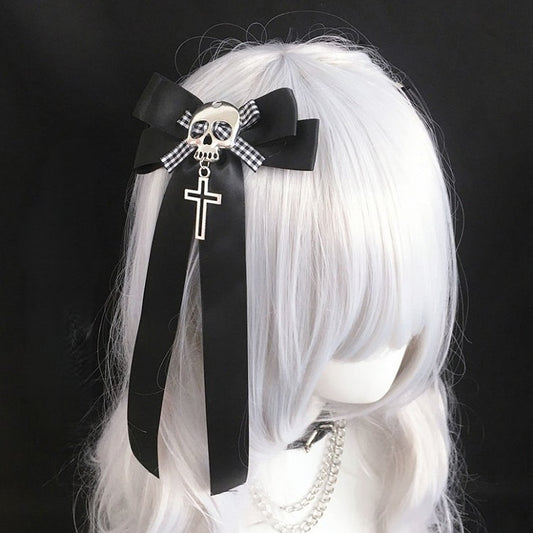 Head Bow Pendant Hairclip with Cross Skull Black