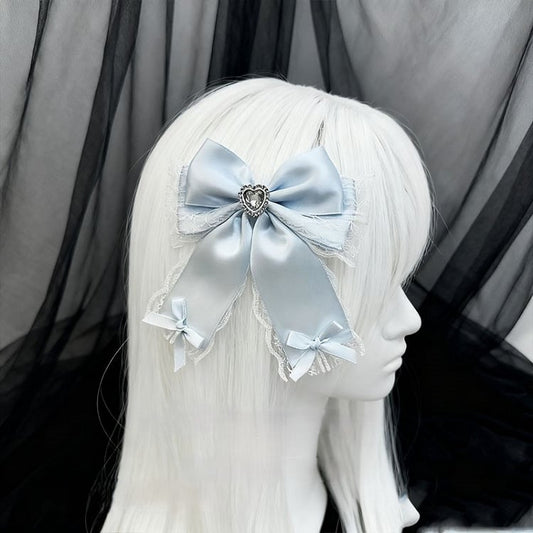 Black/Blue/White Heart Hairclip Lace Trim Rhinestone Bowknot